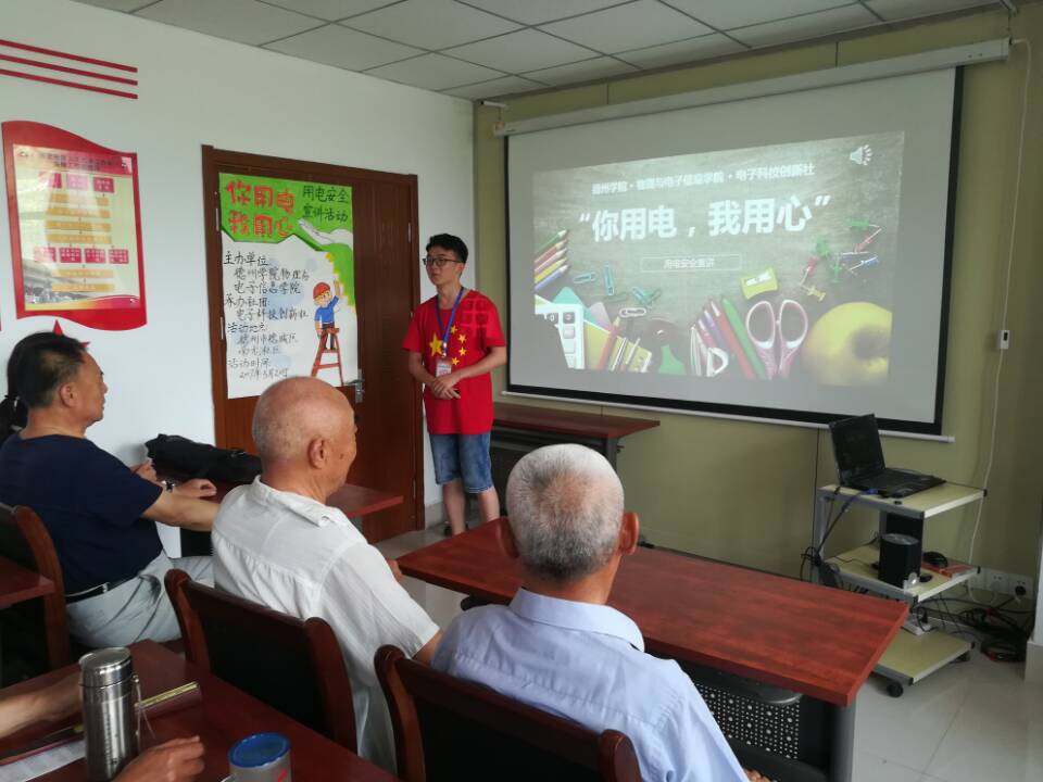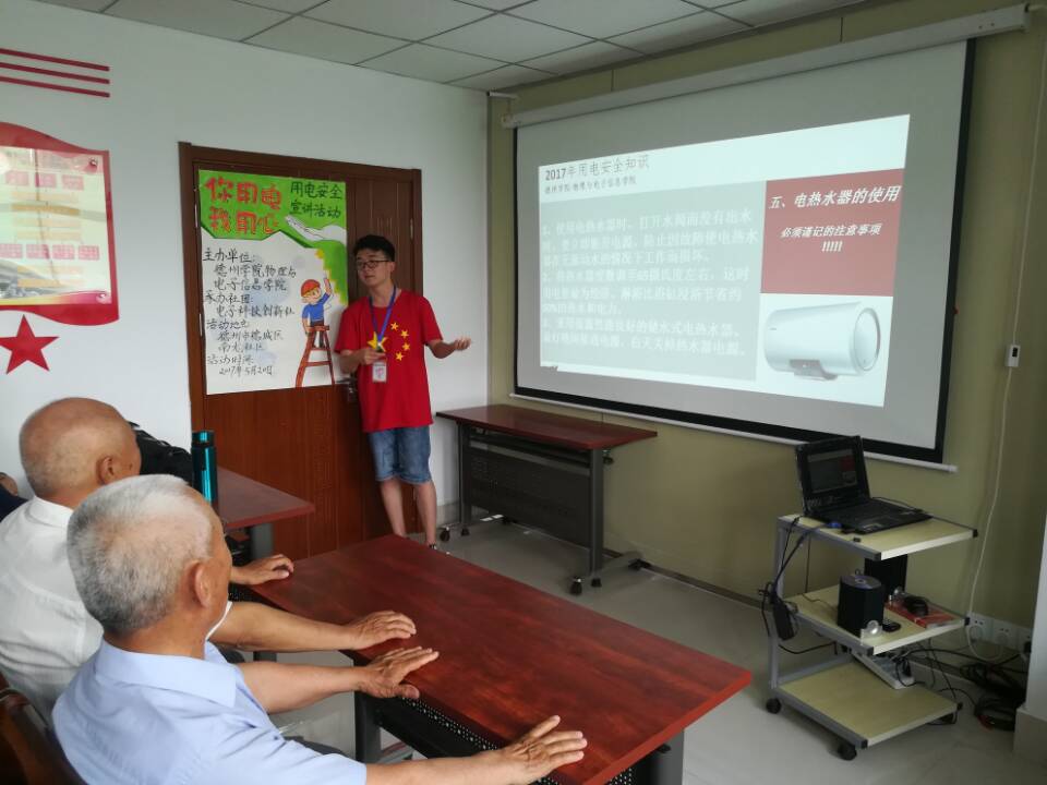 为了普及安全用电知识,增强广大居民群众的安全用电常识,提高自我防范能力,降低意外触电事故,德州学院久久久久久无码精品大片于2017年5月20日在德城区南龙社区举办了“你用电,我用心”安全用电宣讲活动,物电学院电子科技创新社的志愿者主持了此次宣讲。