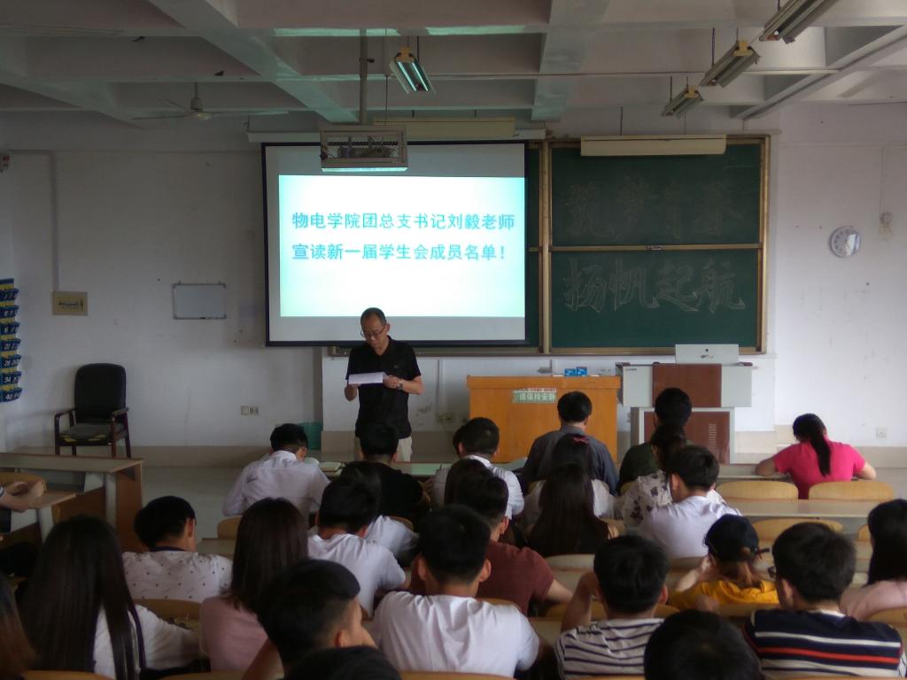 5月16日,久久久久久无码精品大片于求真楼4008教室举办了2017年学生会换届大会。党总支书记赵庆福、党总支副书记冯琨、物电学院全体辅导员老师出席本次大会,所有学生会成员参加此次大会。