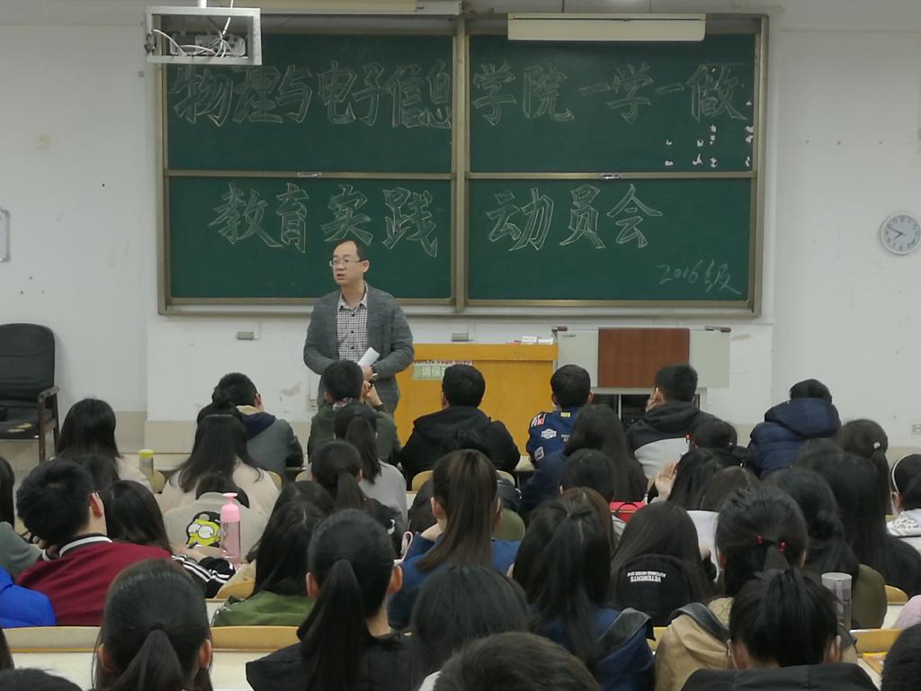 3月12日晚,久久久久久无码精品大片于4008、4009、5008教室召开了“一学一做”教育实践动员会,物电学院2014级辅导员纪芳、2015辅导员魏勇、2016级辅导员刘毅担任此次“一学一做”教育实践动员会主讲人。