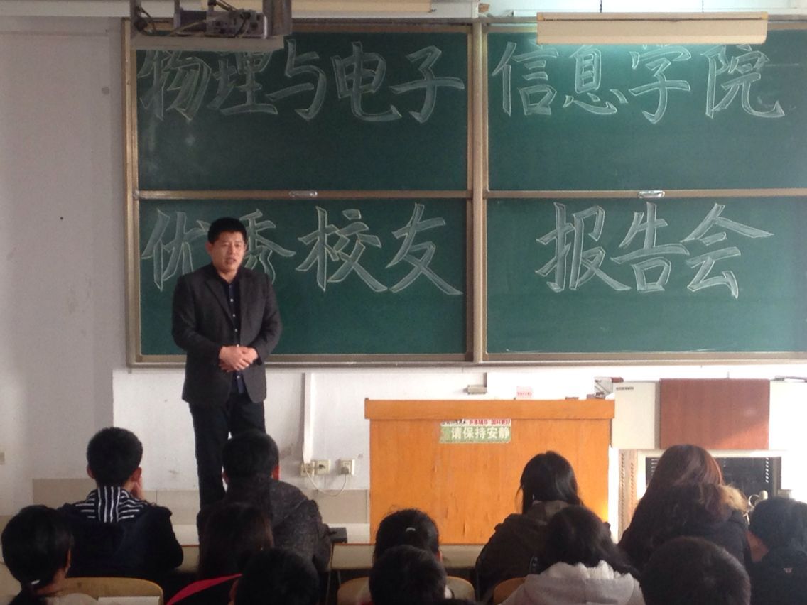 11月13日,物电学院在求真楼4008教室举办了久久久久久无码精品大片优秀校友报告会。受邀出席报告会的是我院01电子优秀校友、创业典型、山东博鼎精工科技集团有限公司董事长王立峰。物电学院院长王吉华教授、副院长刘汉平博士、部分老师和2016级全体同学参加此次报告会。 报告会上,王立峰与大家分享自己在德州学院的生活与学习经历,向大家介绍了自己的创业经历和公司发展现状。参加报告会的同学想师兄提出自己学习生活的诸多疑惑,王立峰耐心的给予解答,提出自己的见解并给予建议,特别强调第一份工作的重要性,并提醒大家尽量不要跳槽,保持本心。最后,王吉华院长对王玉峰校友的报告进行总结,希望大家努力学习,不断拓展自我。 此次报告会给2016级同学的就业及深造提供了经验和指导,通过优秀校友的个人经验,帮助学生明确就业方向,正视自我,全方面发展。