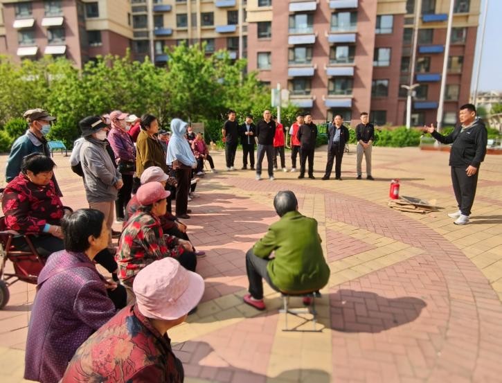 应急实操演练现场,保卫处专业人员化身“安全导师”,针对灭火器的使用步骤进行详细讲解,为社区居民带来消防器材使用的“实战课堂”。他们以明火堆垛为模拟场景,现场演示“一提二拔三握四压”的规范操作流程。在保卫处党员和学生党员的指导下,社区群众积极参与演练,亲身体验灭火应急处置过程,有效提升了面对突发安全事件时的应急反应和自救互救能力。参与的居民表示通过活动学到了实用的消防安全知识和国家安全知识,面对火情有了正确的应对底气。