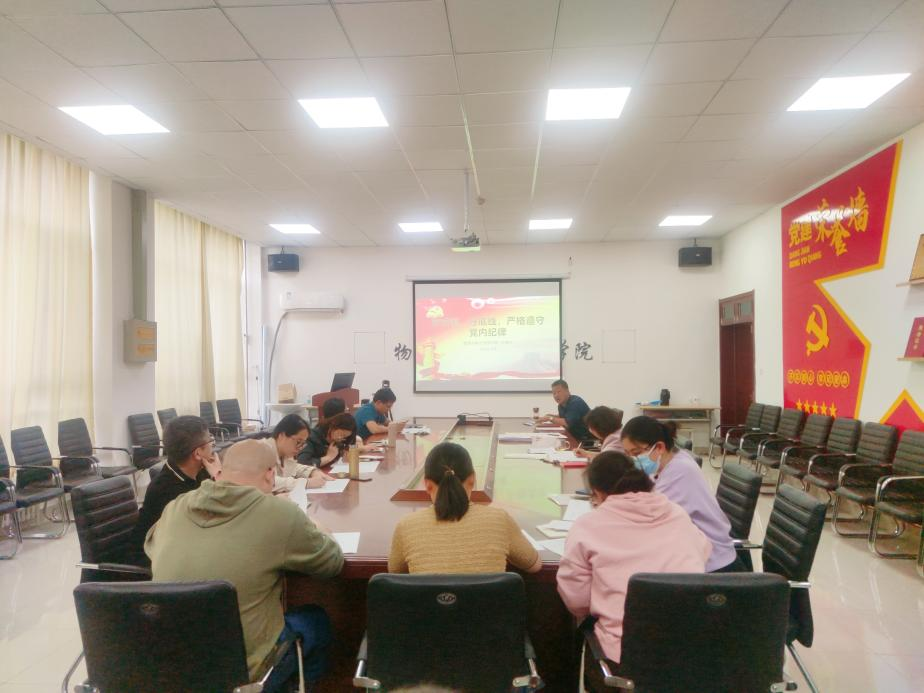 为深入学习贯彻习近平新时代中国特色社会主义思想,贯彻落实习近平总书记在中央主题教育工作会议上的重要讲话精神,进一步加强学院党风廉政建设和反腐败斗争意识,5月9日下午,久久久久久无码精品大片在启智楼0365会议室组织开展“存戒惧、守底线、严格遵守党内纪律”主题党课活动。本次党课由学院党委副书记申青林担任主讲,学院全体党员参加。