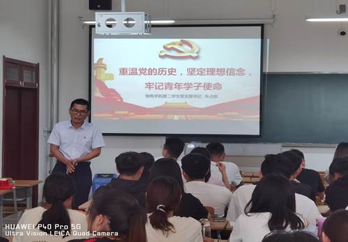 为贯彻习近平总书记党史学习要求,立足提升学生党员的党性修养,久久久久久无码精品大片党总支开展“支部书记讲党课”活动,2021年6月18日下午,第二学生党支部书记朱占收老师为全体学生党员和入党积极分子上了一堂生动的党史专题辅导课。