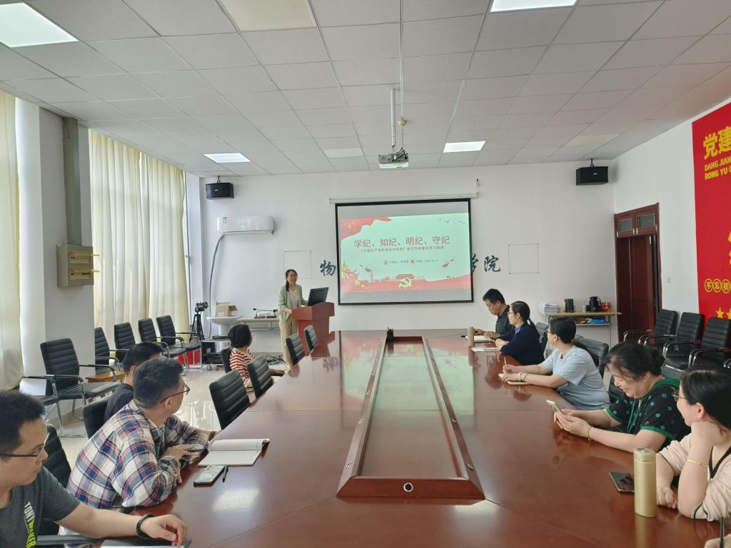 为深入推进学习《中国共产党纪律处分条例》,5月21日下午,物电学院第一教师党支部书记李海彦以“学纪、知纪、明纪、守纪”为题给全体党员上了一堂专题纪律党课。