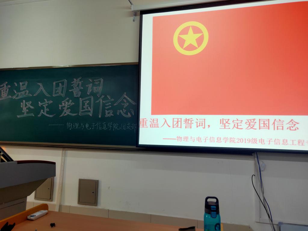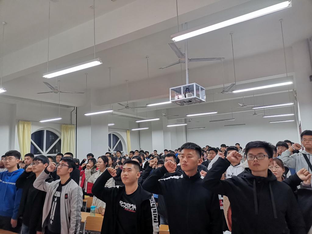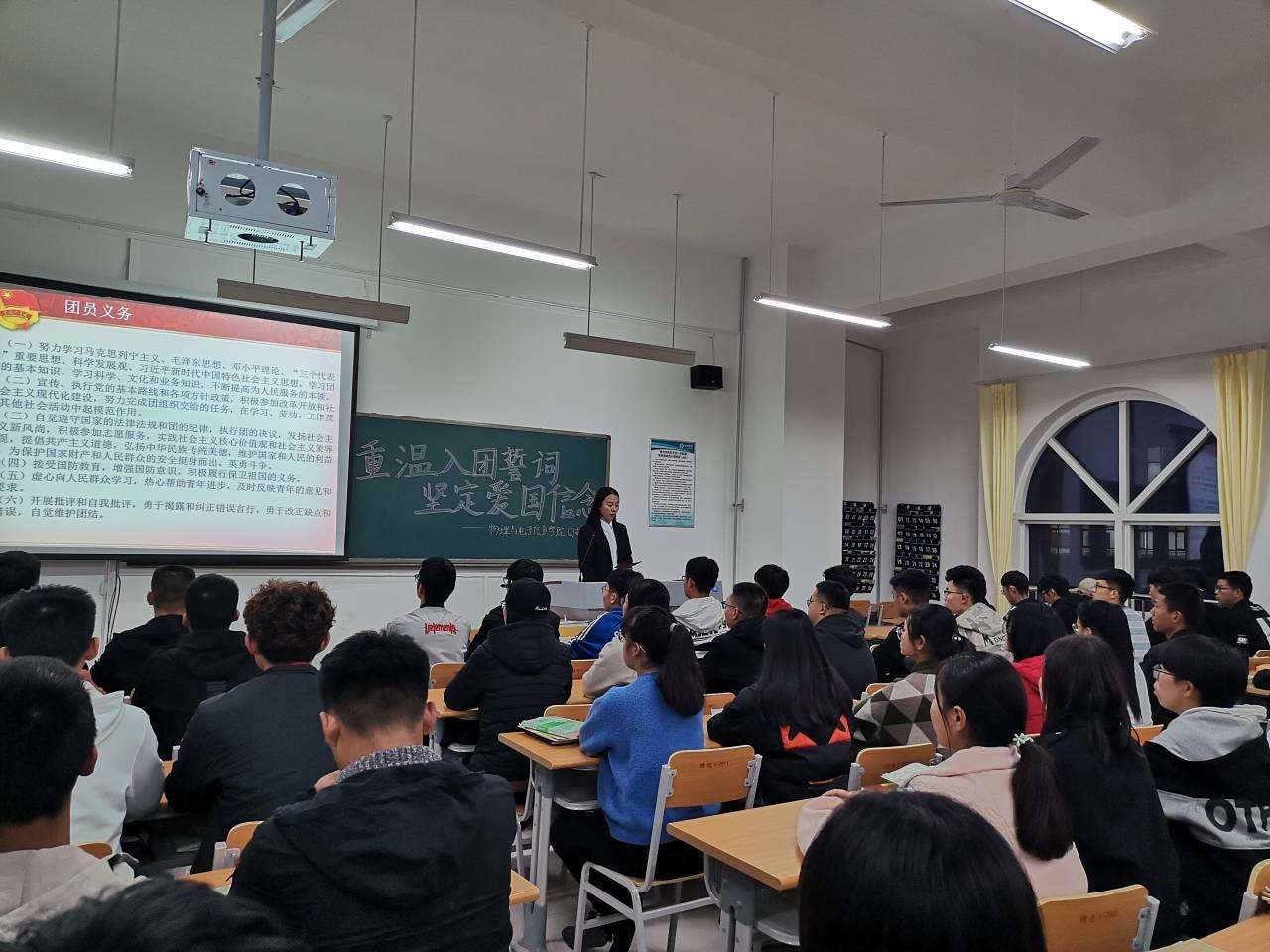 2019年11月8日晚,为深入学习习近平总书记系列重要讲话精神,践行“一学一做,即学习总书记讲话,做合格共青团员”的教育实践活动。久久久久久无码精品大片团总支带领2018、2019级各团支部在明理楼举办了“重温入团仪式”活动。活动采用录像方法记录活动过程,活动包括唱国歌、团歌,宣誓团员誓词,宣读团员权利和义务,团旗,团徽的制作、使用和管理方法,团歌的使用和管理方法等以及观看入团视频。