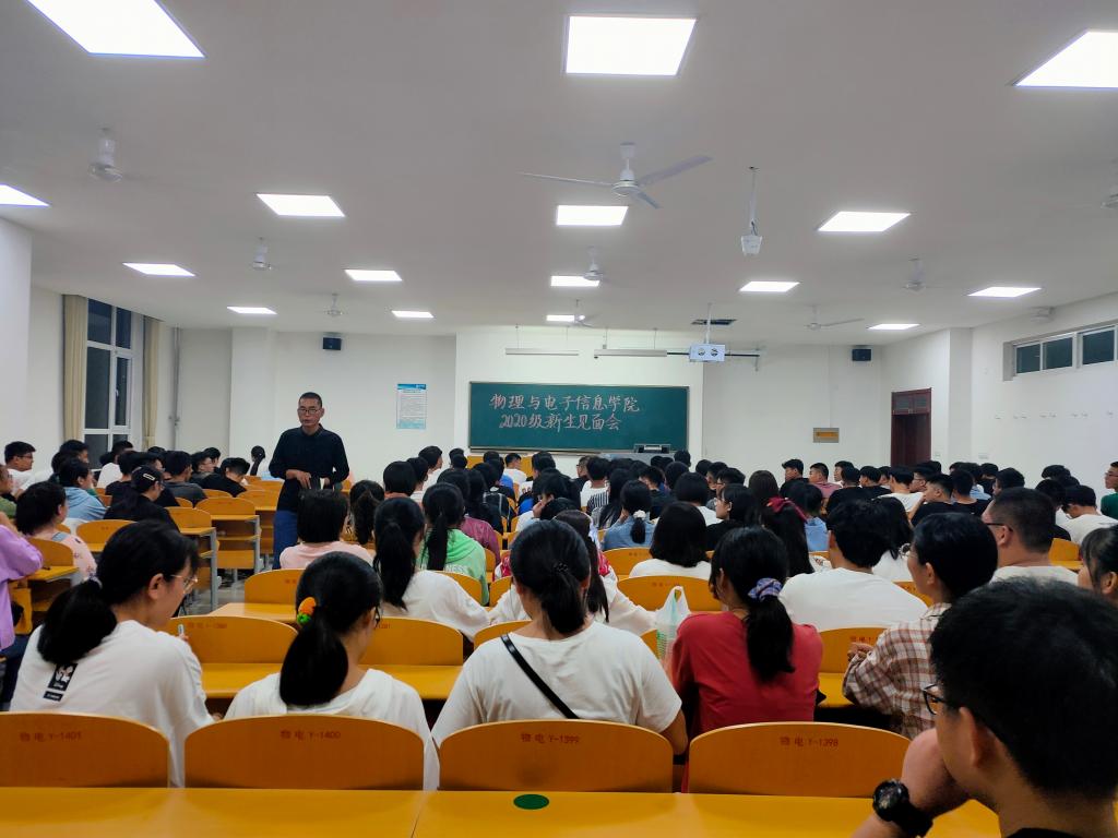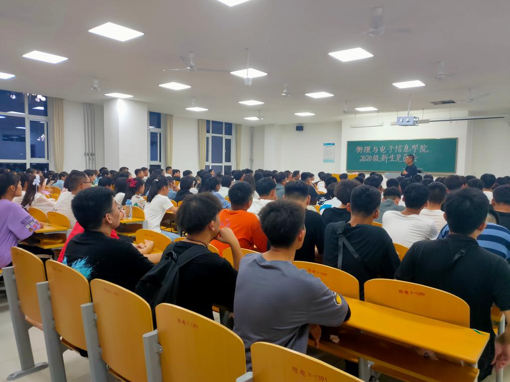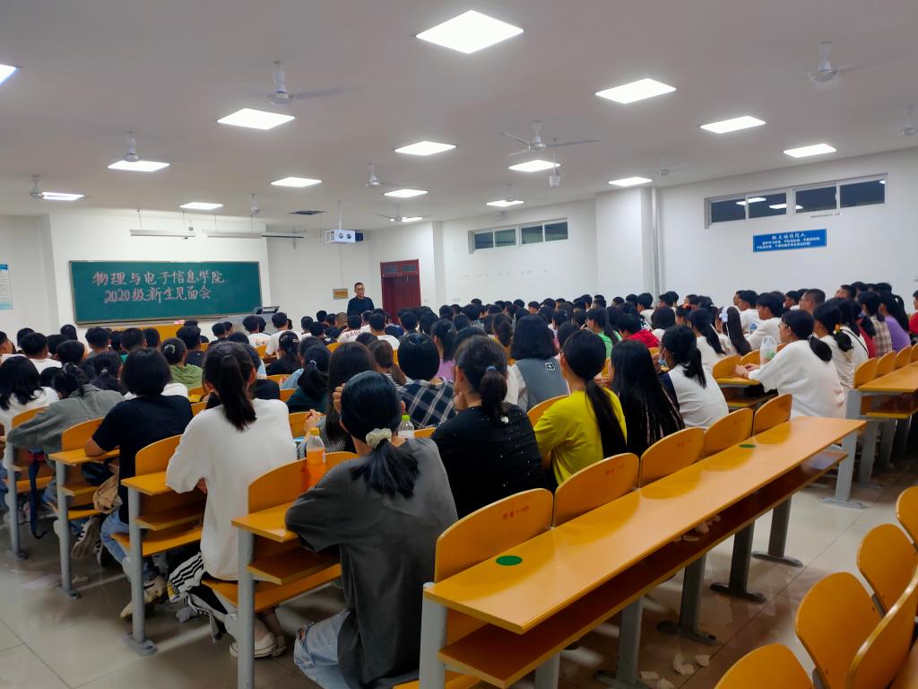 为了使20级新生尽快融入大学生活,9月15日晚上七点,物电学院于明理楼0126召开了新生见面会,此次见面会朱老师,全体20级新生以及全体班助全部参加。