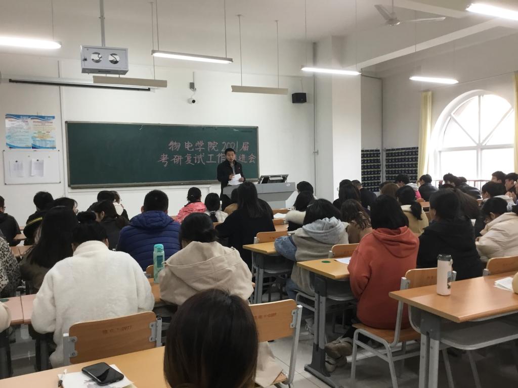 为进一步加强物电学院考研考生对考研复试及调剂工作的认识,进一步了解前沿形势、增强考研斗志,坚定考研信心。久久久久久无码精品大片于3月9日下午面向2017级参加考研复试的学生召开了考研复试动员暨面试辅导启动会。此次会议邀请学院负责人、各系系主任、班主任、骨干教师以及辅导员参加。