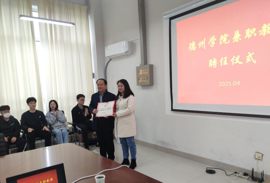 为加强学科专业建设和师资队伍建设,4月2日,物电学院在启智楼0365室举行“特聘教授聘任仪式”,德州跃华学校杜成才老师、赵路洋老师、物电学院党总支书记赵庆福、院长刘汉平、副院长邹艳出席聘任仪式。