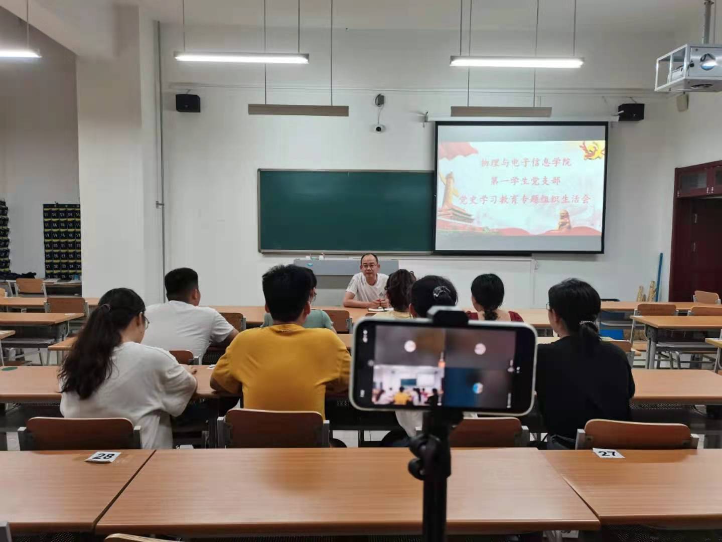 根据《中共中央关于在全党开展党史学习教育的通知》精神,按照《关于发展党史学习教育领导小组办公室<关于召开党史学习教育专题组织生活会有关问题的答复>的通知》要求,物电学院结合工作实际,于7月5日19:00各学生党支部召开党史学习教育专题组织生活会。会议由各学生党支部书记主持,全体党员参加。