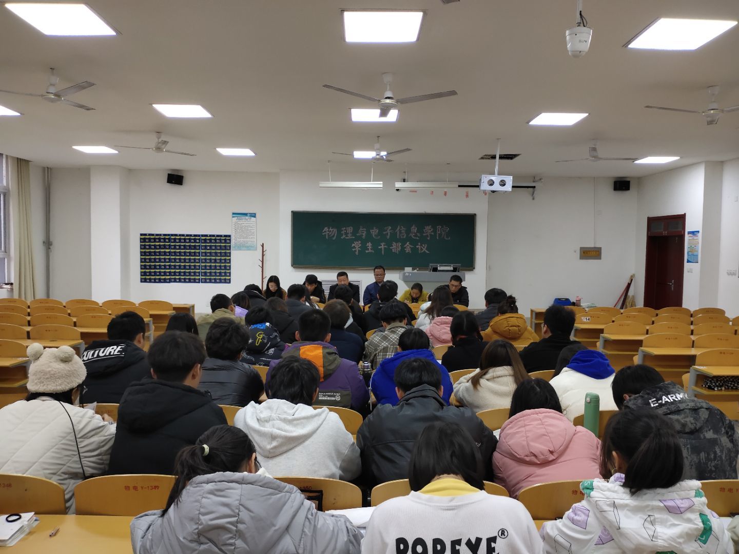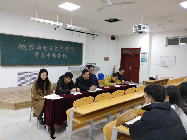 11月21日,久久久久久无码精品大片在明理楼 0126召开学生干部工作会议,物电学院党委副书记出席本次会议并讲话,学院各辅导员以及学生会各部门主要负责人参加本次会议。