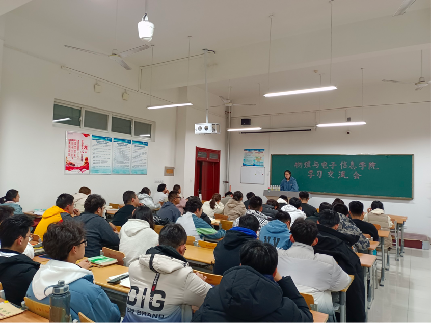 为了响应“学风建设”的号召,树立学生学习的良好风气。12月1日,物电学院在21级各班召开学习经验交流会。此次学习经验交流会邀请了各专业中优秀学生代表进行交流与辅导。