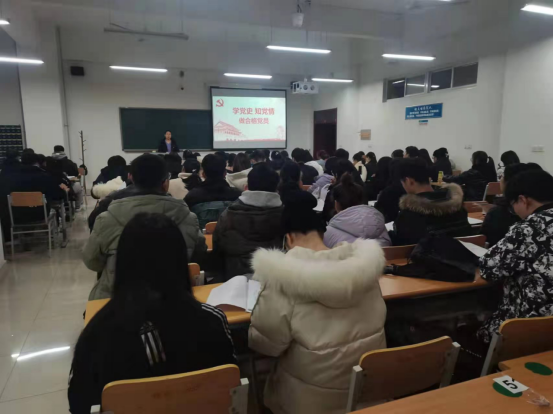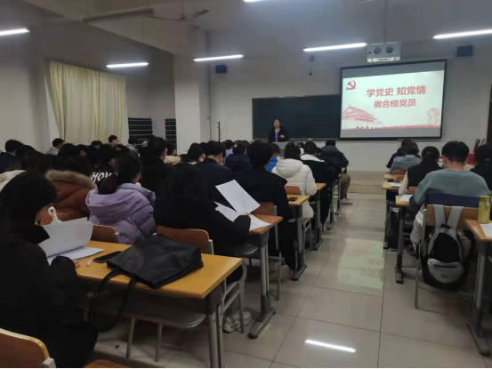 2021年是中国共产党成立100周年。在全党开展党史学习教育是党中央立足党的百年历史新起点,统筹中华民族伟大复兴战略全局和世界百年未有之大变局,为动员全体党员满怀信心,投身全面建设社会主义现代化国家而作出的重大决策,为进一步从党的百年伟大奋斗历程中汲取前进的智慧和力量,巩固深化“党史学习教育”主题教育成果,根据上级党委统一安排,12月3日晚,物电学院组织员纪芳在明理楼0215为2021年下半年党员发展对象开展《学党史 知党情 做合格党员》主题党课。