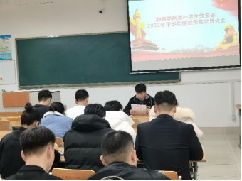 为响应党的号召,培养优秀党员,12月14日,物电学院学生第一、第二、第三支部党支部分别于明理楼227、223、216教室召开支部党员大会与接收预备党员大会。第一支部会议由支部书记纪洪飞老师主持,第二支部会议由支部书记朱占收老师主持,第三支部会议由支部书记高晓宇老师主持。
