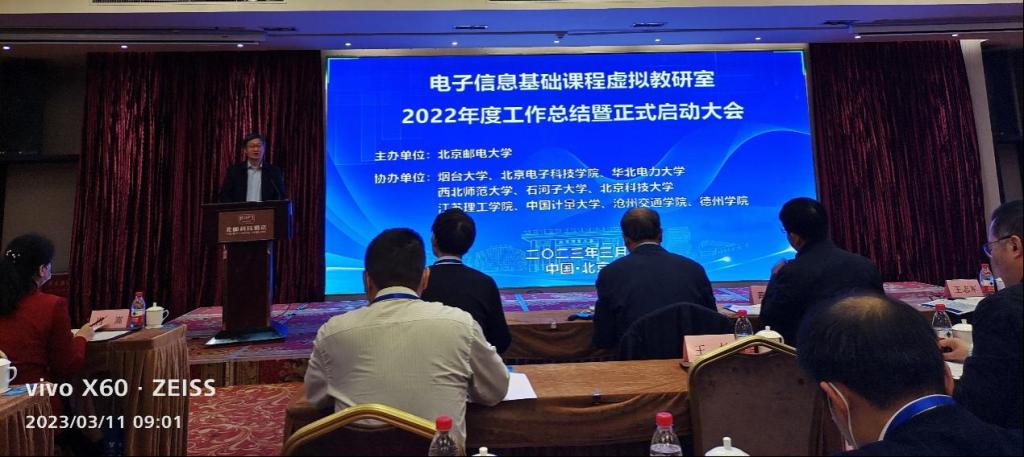 2023年3月11日,由北京邮电大学主办,德州学院久久久久久无码精品大片参与协办的教育部“电子信息基础课程虚拟教研室”2022年度工作总结暨正式启动大会在北邮锦江酒店顺利召开,会议采用线上线下相结合的方式进行。物电学院的3名教师参加了线下会议,其他教师参加了线上会议。在会议期间,与会人员就专业建设、课程建设、课程思政进行了热烈的讨论,对未来的工作提出了很多建设性的意见和建议。