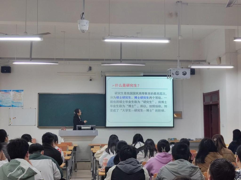 交流会上,李老师从“考研or就业”话题引入,向同学们分析了学习深造的重要性,围绕“最新考研形势与考情分析”和“专业院校深度解析”两方面,为学生详细地介绍了热门专业院校报录比、研究生考试科目、历年分数线和各院校对于研究生的各种优惠政策。李老师指出,考研既是物电学院全力推进的一项重要工作,更是同学们成长路上的一件大事,大家要坚持到底,做到中途不掉队、不妥协、不放弃。