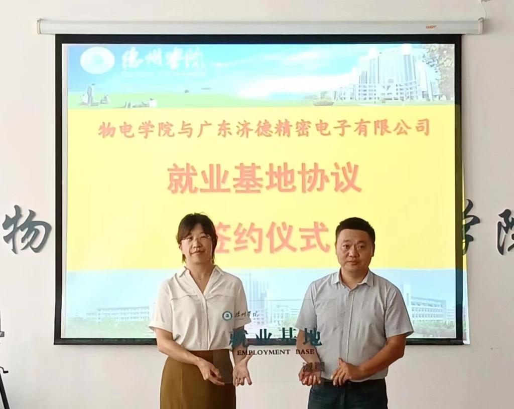 通过前期积极走访对接交流,物电学院与广东济德在共建就业基地方面达成一致意见。此次就业基地共建协议的签署是物电学院与广东济德开展校企合作的序幕。物电学院后续也将进一步主动适应区域社会发展需要,优化学科专业结构,深入推进校企深度融合协同育人,扎实做好服务地方工作。