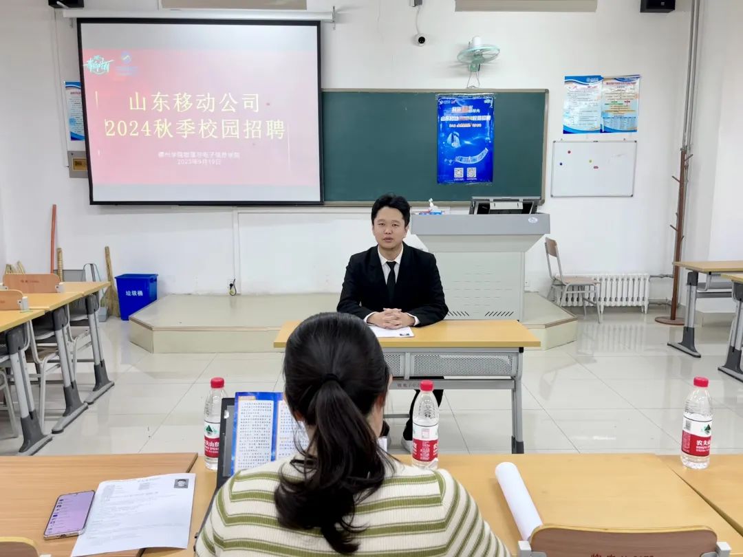 宣讲会上,山东移动招聘负责人以PPT的形式向毕业生们介绍了企业概况,包括企业发展历程及企业重点发展项目,同时围绕企业的发展战略、薪资待遇、招聘岗位、招聘对象和招聘流程等方面进行了详细的介绍,并与毕业生们积极互动,现场答疑。会后,企业负责人对有需求毕业生进行了面试。