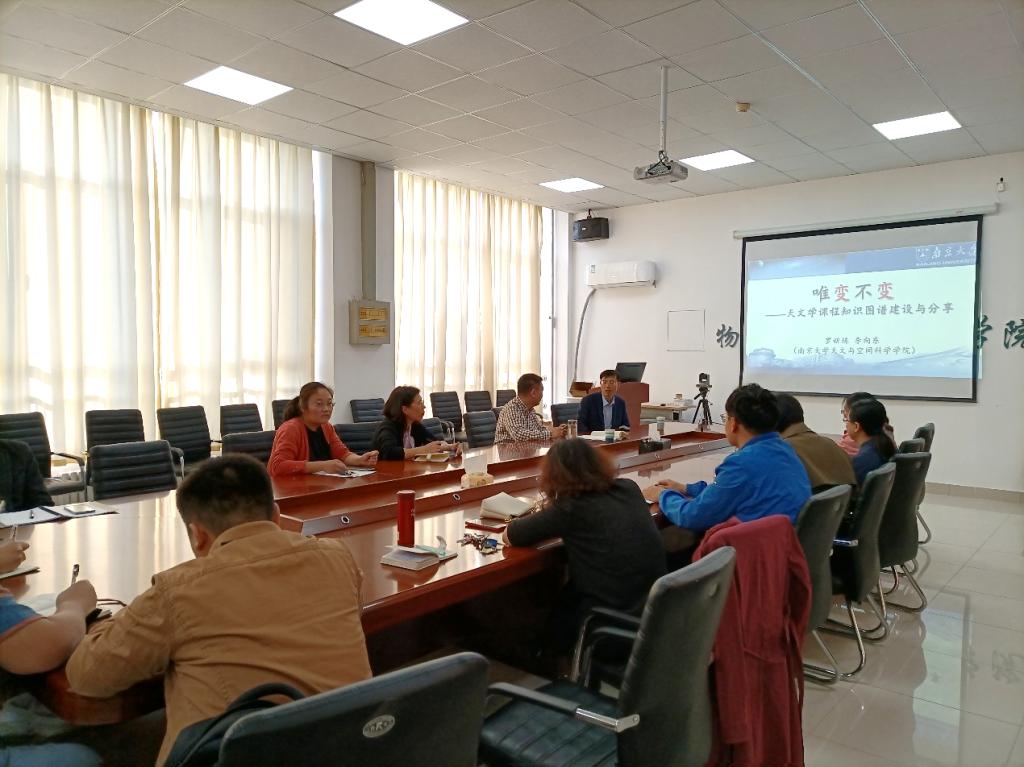 10月25日下午,久久久久久无码精品大片邀请了南京大学的李向东教授在启智楼0365会议室为院系教师作了题为“唯变不变——课程知识图谱建设与分享”的报告。院系主要负责人、物理学虚拟教研室成员和学院教师参加了此次报告会。
