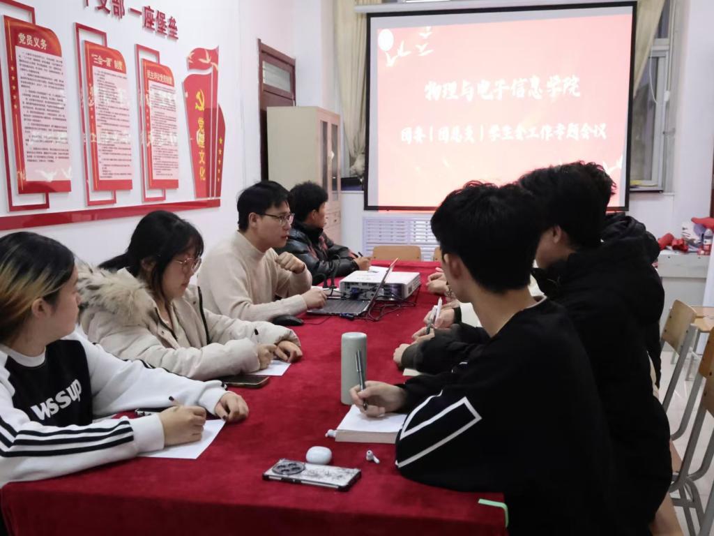 为精准把握物电学院近期工作的执行进度,优化学生干部培养体系,进一步提升学生骨干的团队协作能力和责任意识,物电学院于11月12日在明理楼0219召开学生会工作专题会议。