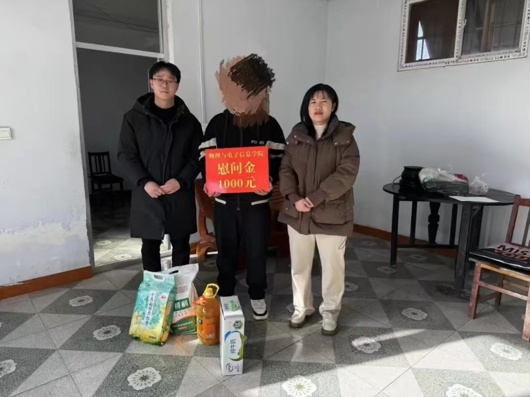 为深入落实高校家庭经济困难学生资助政策,进一步强化家校协同育人合力,1月14日,物电学院开展“筑梦育人·有爱相伴”家访活动,学院相关负责人带领全体辅导员分别奔赴菏泽成武、济宁金乡、聊城高唐等5地进行走访慰问,为困难学生家庭送去生活物资及新春祝福。