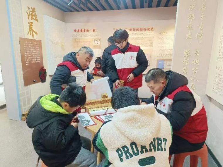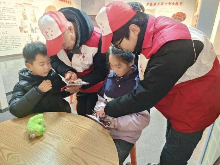 还有同学投身于传统手工艺传承,与手工艺者一起教小朋友剪纸。他们从最基础的剪纸方法开始,耐心讲解每一个步骤。一位参与活动的小学生兴奋地说:“大哥哥教得特别好,我学会了好几种新的剪纸技巧,以后我也要好好练习。”在教授剪纸技巧的同时,还讲述了许多关于剪纸的历史故事和文化内涵,让孩子们在潜移默化中加深了对剪纸艺术之美的理解。孩子们在实践中充分发挥想象力,创作出了一幅幅精美的剪纸作品,亲身感受到了剪纸艺术的独特韵味。陪同参与学习的家长表示“这些亲手剪出来的手工艺品比买来的更有意义。”
