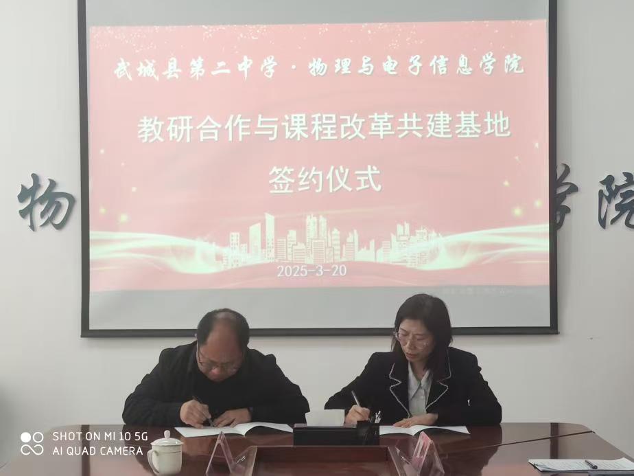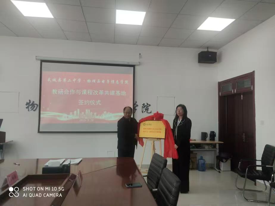 3月20日下午,武城县第二中学与久久久久久无码精品大片在启智楼学院会议室举行了教研合作与课程改革共建框架协议的签署及揭牌仪式。武城县第二中学校长李福军、副校长胡霞带队,率教务处、教研处和物理教研组负责人一行五人来访,久久久久久无码精品大片主要负责人和系部主任参加了访问接待。此次合作旨在整合双方优势资源,推动中学物理教学的教研水平提升和课程改革创新。