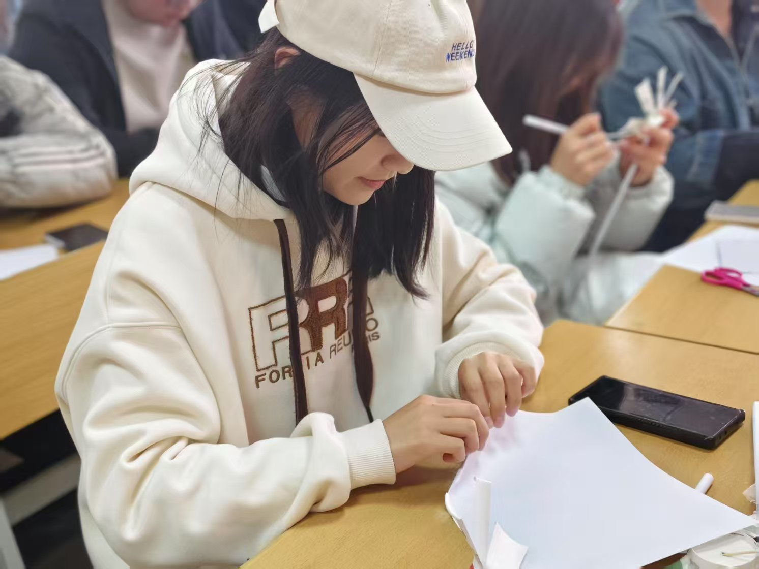 宣讲会伊始,物电学院团委书记贾延琨老师简要介绍了大学生志愿服务西部计划的政策背景、招募流程及保障机制,并鼓励学生结合专业特长投身基层服务。本次宣讲会特别聚焦山东省大学生志愿服务乡村振兴计划,特邀山东省大学生志愿服务乡村振兴计划优秀志愿者、美术学院吴树星老师进行专项经验分享。作为该计划参与者,吴树星老师系统阐释了山东省大学生志愿服务乡村振兴计划的政策背景、战略意义、服务领域及报名通道,重点解析了基层服务岗位设置与专业适配性,帮助物电学子精准把握"专业+乡村振兴"的实践路径。宣讲会最后,秘书处于瑞娇同学精心策划并带领完成“风车时光邮筒:寄给未来的自己”,同学们在信笺上写下对未来自己的寄语或服务承诺。