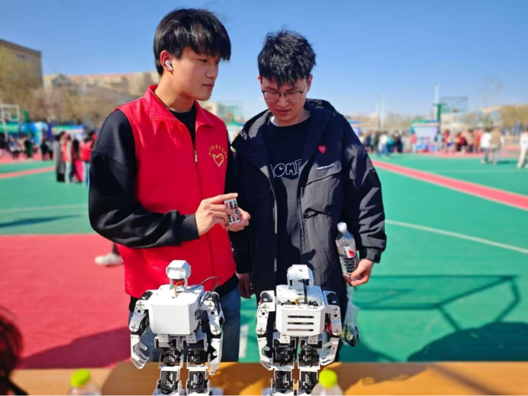 活动现场,物电学院“星光”科普志愿服务队以“科技助公益”为主题,现场展示了智能机器人互动演示,吸引了众多师生驻足体验。机器人灵活的动作和志愿者们的趣味科普讲解,将科技与公益结合,传递了创新服务的理念。活动还巧妙融入志愿服务知识问答环节,增加了活动的趣味性,也激发了大家的参与热情,营造了浓厚的志愿服务氛围。