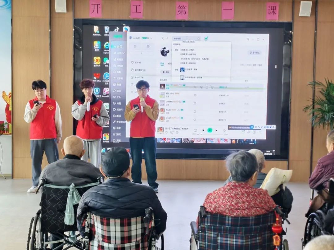 活动当日,志愿者们携精心编排的文艺节目与慰问物资抵达现场。开场舞《相亲相爱》以整齐灵动的舞姿与蓬勃向上的朝气点燃全场,老人们专注凝望舞台,笑意盈盈;经典歌曲《我只在乎你》通过手语演绎焕发新意,引得台下轻声跟唱;互动环节中,“方言报菜名”、“击鼓传花”等趣味游戏拉近了代际距离,多位老人主动登台展示戏曲选段与红色歌曲,将现场气氛推向高潮。志愿者们还通过谈心交流、手工制作等方式,深入了解老人的生活需求与精神世界。