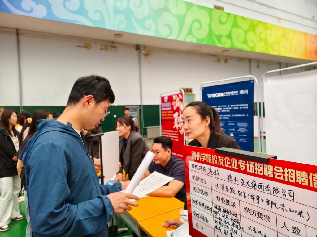 为深化校企合作,拓宽毕业生就业渠道,给2025届毕业生提供优质的就业机会和广阔的发展平台,德州学院物电学院于5月9日在体育馆内组织2025届毕业生参加校友企业专场招聘会,学院老师亲临招聘会现场调研指导,为活动顺利开展保驾护航。