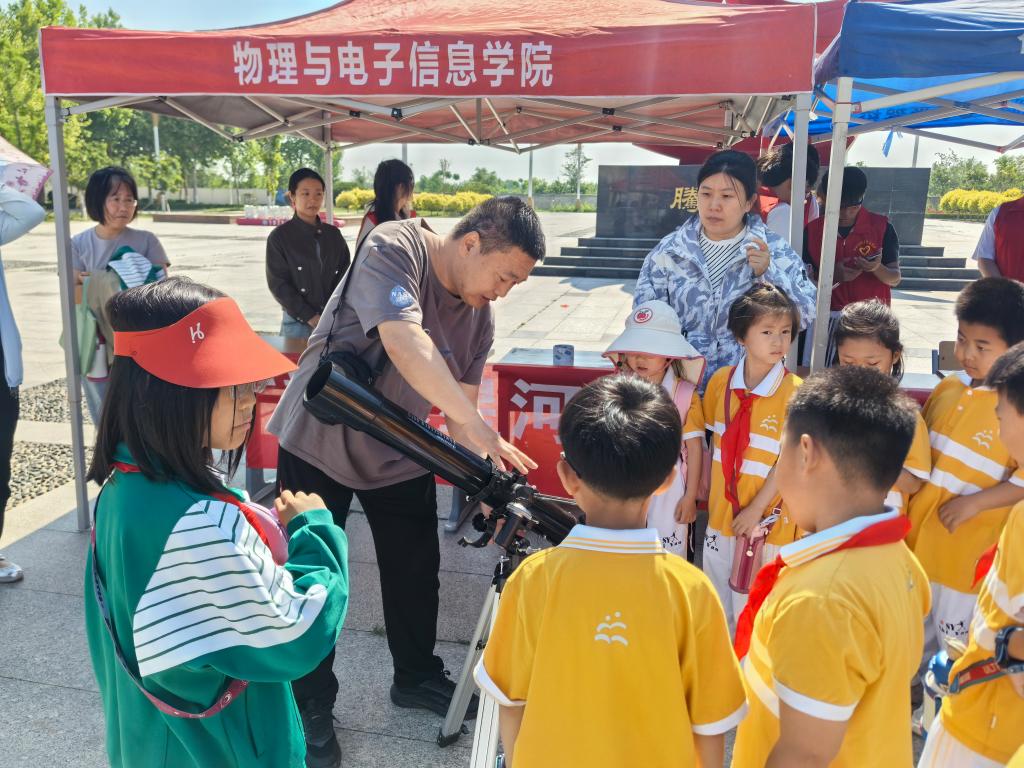为了激发小朋友们对科学的浓厚兴趣,拓宽他们的视野,让神秘的科学知识“走出课本”,5月24日,物电学院第一学生党支部于腾飞广场开展“械探星河,验启科学”科普活动。