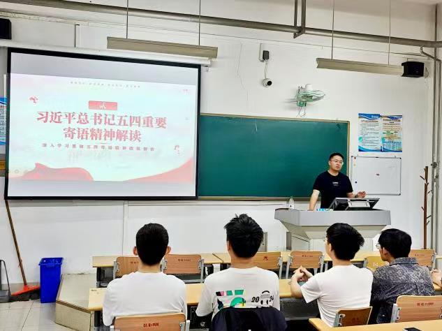 4月17日,赵剑桥老师为入团积极分子深入解读全国两会精神以及习近平总书记五四重要寄语精神。赵老师对习近平总书记五四重要寄语精神进行了详细阐释,结合时代背景和青年发展需求,引导同学们思考如何在新时代践行五四精神。