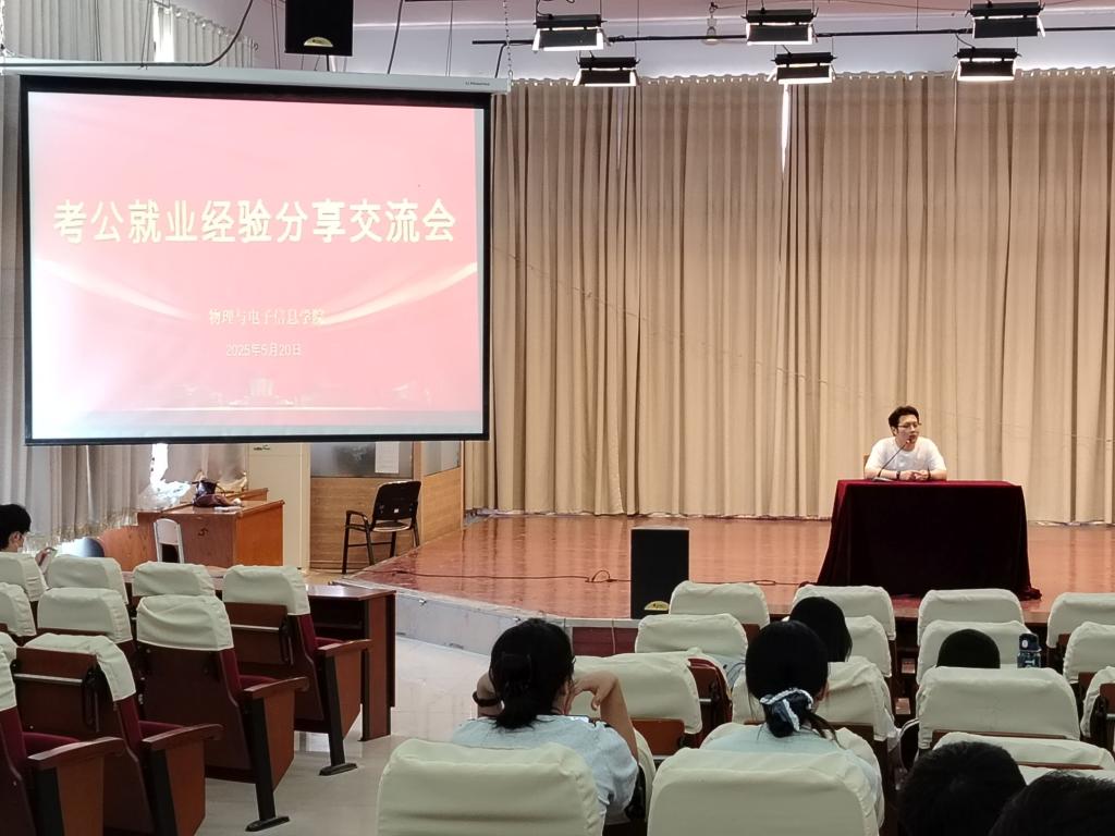 为积极响应学生职业发展需求,帮助学子清晰把握考公及多元就业方向,5月20日,物电学院在求实楼4009举办考公就业经验分享交流会。此次活动邀请考公考编上岸、被大中型企业录用,以及在校期间获得重大赛事奖项的2025届毕业生担任任主讲嘉宾。