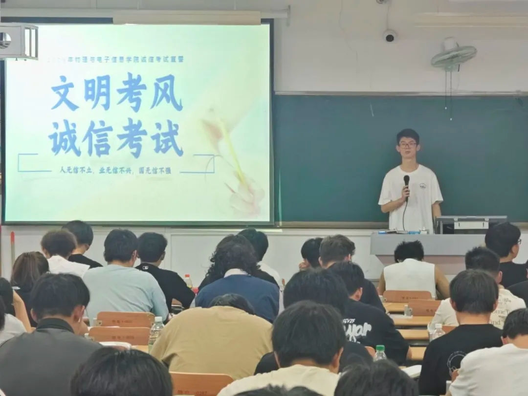 为筑牢学风建设根基,弘扬诚实守信的传统美德,培育崇真尚实的学术品格,6月24日,物电学院于明理楼118展开“文明考风,诚信考试”宣讲会。