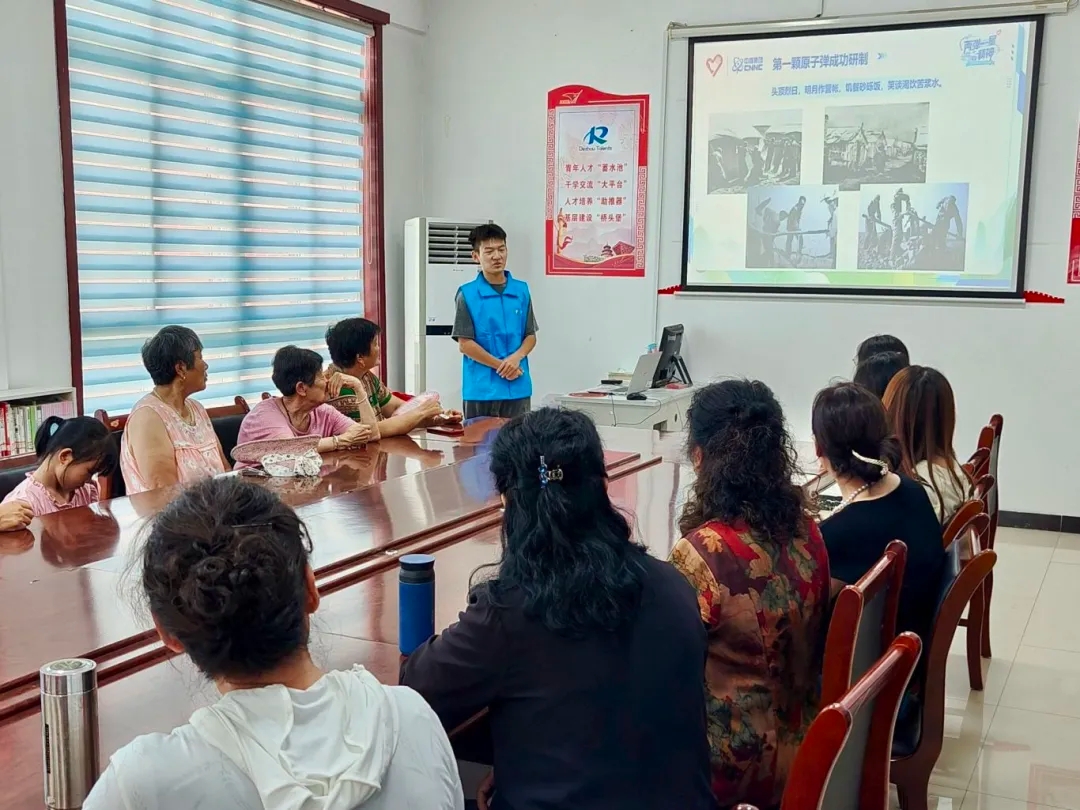 宣讲团来到宁城街道康宁社区党群服务中心开展“两弹一星”精神志愿宣讲活动,队员们以《核能发展三步走战略》为脉络,清晰勾勒出我国核能事业从起步探索到自主创新的宏伟蓝图与坚实足迹;又以《两弹一星建设的艰难条件和科学家们的艰苦付出》为切口,深情讲述了老一辈科研工作者在极端简陋的环境中,以“勒紧裤腰带也要搞出原子弹”的信念攻坚克难的动人故事,让在场听众深刻感受到“自力更生、艰苦奋斗,大力协同、无私奉献,勇于登攀、敢为人先”的精神力量。