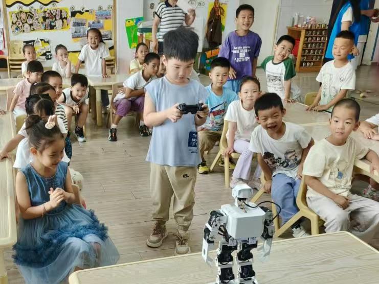 宣讲团走进红缨幼儿园开展 “两弹一星”精神宣讲及“星光” 科普活动。宣讲员以 “功勋者的星空轨迹” 为框架,将科学家故事与科学原理相结合进行讲解。随后,宣讲团队员们带领孩子们用太空泥捏出 “两弹一星”,太空泥如同 “两弹一星” 的精神种子,悄悄在孩子们心中扎根。人形机器人表演的舞蹈互动吸引了孩子们的目光,队员们还带领孩子们体验操作机器人,孩子们在实践中慢慢打开了科技的神秘大门。有个小男孩兴奋地举着操控器说:“我以后也要造一个会跳舞的机器人!”最后,孩子们凭借刚了解的“两弹一星”精神知识获得套圈机会,在轻松的互动中实现 “玩中学、学中乐”。