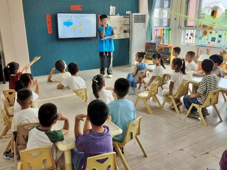 宣讲团来到龙门街道莲花池社区暑托班。主讲员以 “两弹一星” 精神为主题,通过讲述钱学森归国、郭永怀牺牲等感人故事,生动诠释了 “热爱祖国、无私奉献” 的精神内核。在之后开展的 “红心向党” 剪纸活动中,孩子们在志愿者的耐心指导下,剪出纸杯火箭、五星等作品,将科技元素巧妙融入红色基因的传承中。宣讲团带来的智能机器人凭借多样的动作成为现场焦点,赢得孩子们的阵阵惊叹。