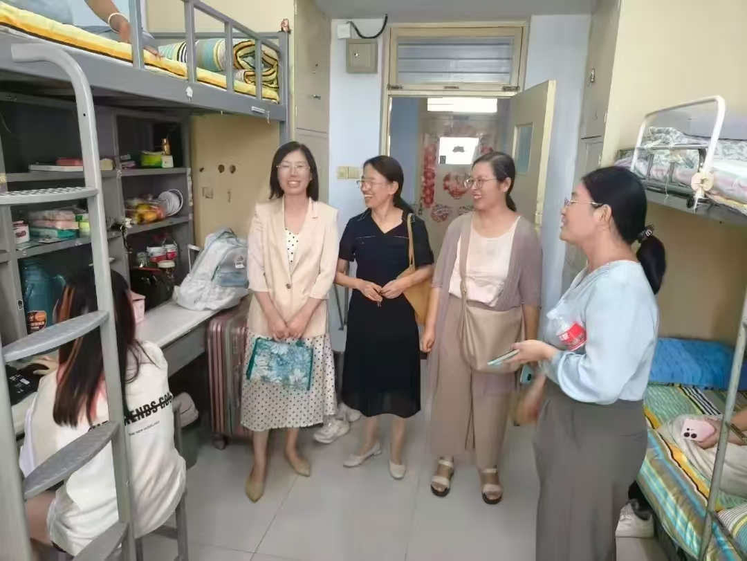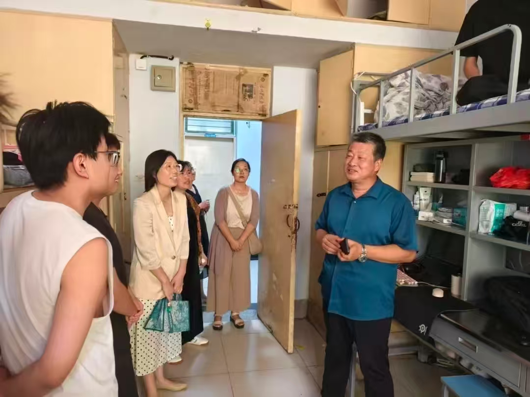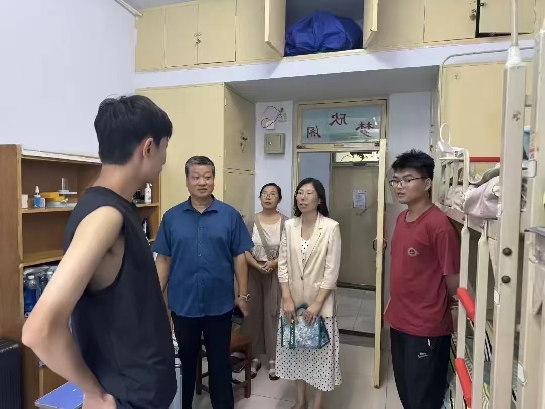 为深入了解2025级新生入学情况和思想动态,帮助新生尽快融入大学生活,9月6日下午,物电学院党委班子与新生辅导员深入新生宿舍,与刚入校园的2025级新生们面对面交流,把学院的关怀与指引送到“家门口”。