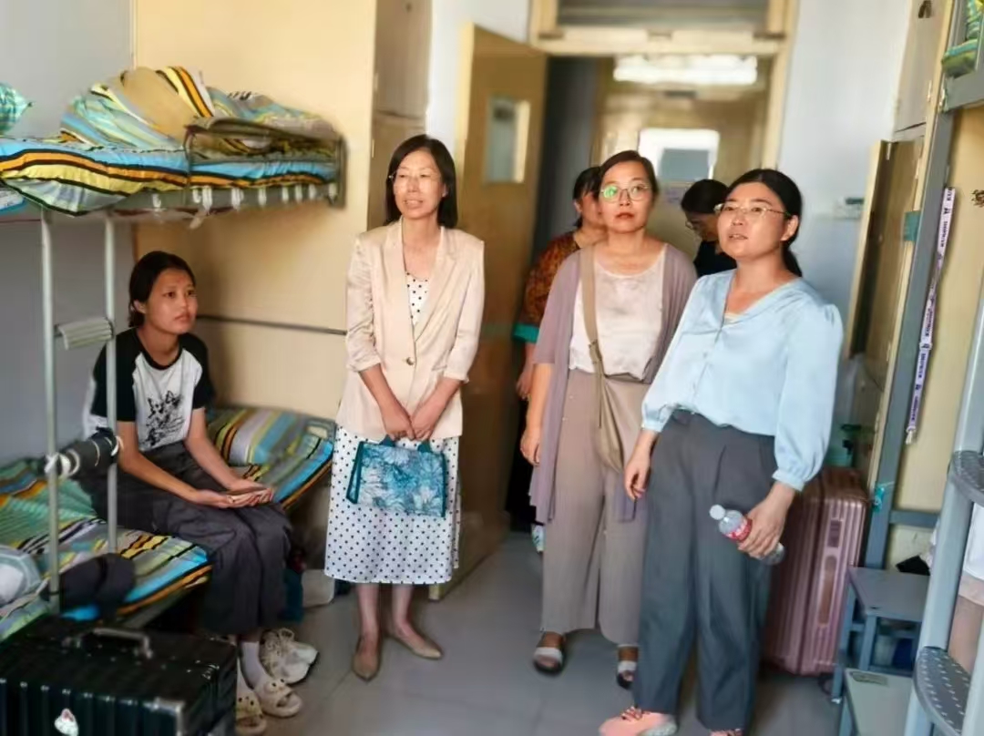 走进宿舍,老师们首先对宿舍基础设施与生活用品进行细致排查,确保床铺、水电等设备正常使用,保障新生基本生活需求。同时,围绕宿舍安全重点强调,反复叮嘱新生严格遵守学校宿舍管理规定,坚决杜绝违规电器使用,时刻绷紧人身财产安全与防火用电安全之弦,共同维护整洁、文明、安全的住宿环境。交流中,老师们与新生亲切畅谈,不仅详细询问大家的假期见闻、升学后的心理感受、身体健康状况及未来学业规划,还仔细检查宿舍卫生清扫、日常消毒与通风情况,引导新生养成规律作息与健康生活习惯,鼓励大家以积极心态调整状态,用饱满热情迎接新学期的学习与生活挑战。