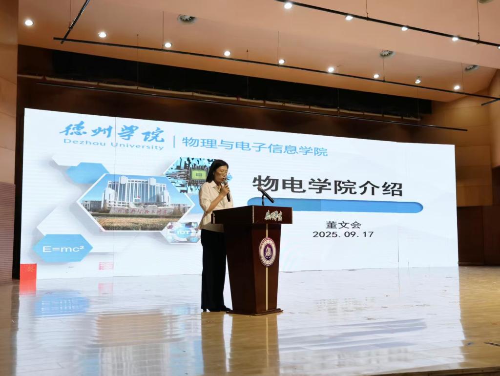 学院院长董文会以“以期待为灯 赴未来之约”为题,系统地为新生们讲述了物电学院的发展历程、师资建设,细数学院在学科建设、科研创新方面取得的显著成效以及人才培养的特色,为学子们的专业学习与职业规划提供清晰指引。她提到,学院始终锚定“培养德知能型应用人才”目标,紧跟国家战略与产业需求,以学科建设为引领,以产教融合为抓手,拥有量子力学课程教学团队、天体物理创新团队2个省级团队,先后获批山东省青创团队(天体物理创新团队)、山东省高校特色实验室、工信厅交通大数据创新实验室、山东省太空环境与探测技术重点实验室,依托科创空间与竞赛平台,全力为学生搭建起多元化的成长平台。最后,她殷切勉励2025级新生筑牢理论根基,积极参与科创竞赛与企业实训,锤炼实践本领。以严谨态度探索科学真理,成为服务区域经济社会发展与国家信息技术产业的高素质人才,在校园中实现价值,书写青春华章。