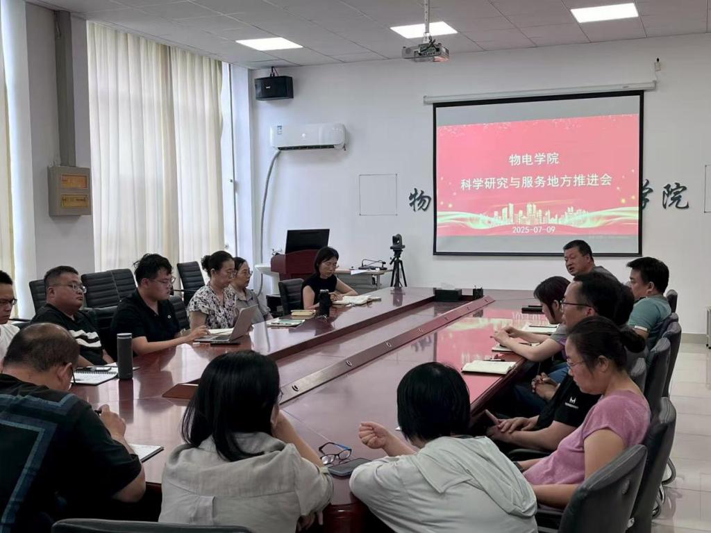 为深入贯彻落实学校科研与社会服务提质增效战略部署,推动学院科研工作高质量发展,7月9日下午,物电学院在启智楼0365会议室召开"科学研究与服务地方工作推进会"。学院领导及科研骨干参加会议。