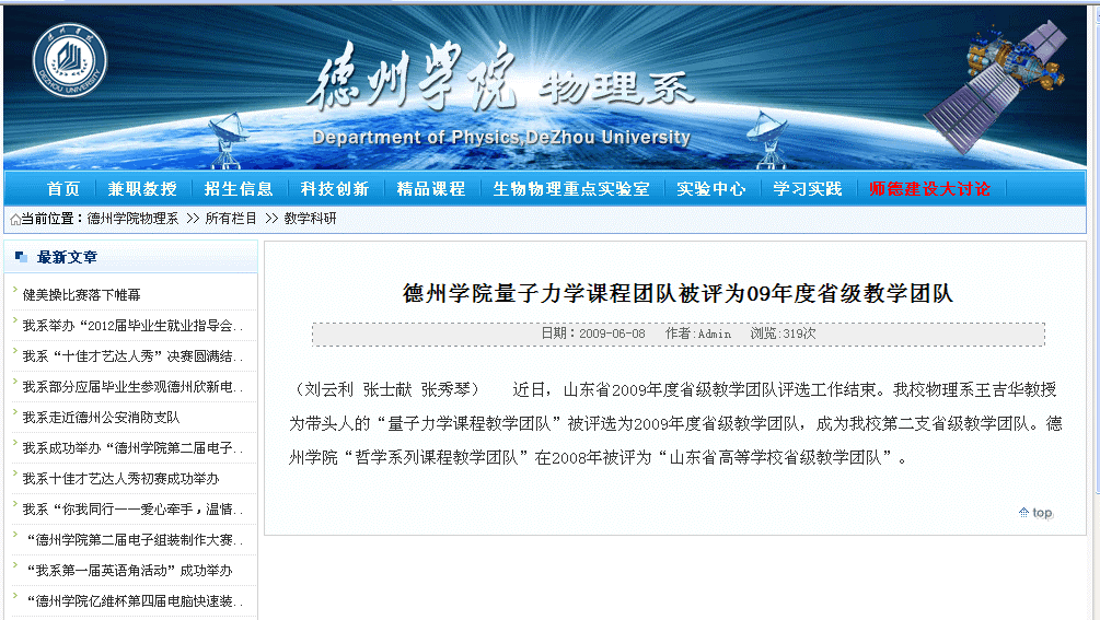 物理学(师范)专业注重对学生教学技能的训练,不但在授课中讲授相关教育教学理论知识,还邀请德州市中学名校长和优秀教师为学生们做有关教学的报告、同时邀请兼职教授和兼职老师进行实践指导。