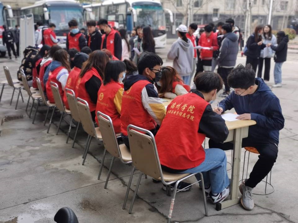 3月20日清晨,物电学院青志部成员早已在德州学院二餐门口和建行楼附近的空地集合就位。经过与青年志愿者联合会负责人短暂的沟通后,物电学院青志部的志愿者们便开始进行填表、引领、维持秩序等一系列活动,保障了献血活动的顺利进行。他们工作态度热情认真,细心地为每一位同学讲述献血流程,耐心地告诉每一位同学如何进行填表。活动结束,他们收获着充实和开心向青年志愿者联合会负责人告别。