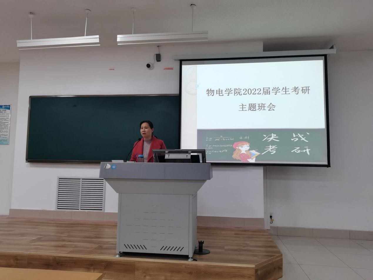 会上,纪芳老师介绍了物电学院2021届考研概况,录取率达34.21%,为近几年录取率最高。根据2021届考研情况,纪芳老师提出三人中有一人考研成功的观点并激励同学们坚定信心,积极进取;根据六大数据、三个原则选择考研学校;回答了专业课选择问题;对于学生考研全程复习规划提出建议,引导学生制定一天之内的复习计划;讲述往年的考研过程中存在的主要问题,提醒同学们吸取往年考研的教训。会议过程中,同学们积极响应,认真了解考研情况,会议效果达到最佳。