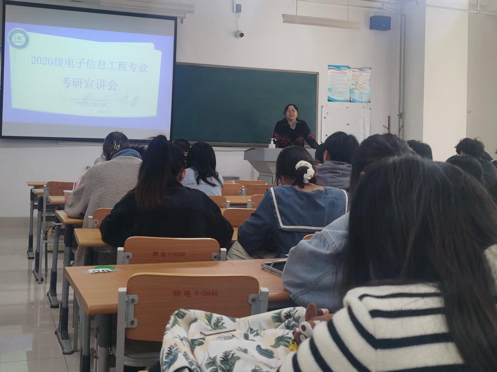 为进一步激发物电学院学子的考研热情,增强考研信心,帮助学生尽早在备考中找准方向、明确目标,4月2日,久久久久久无码精品大片电子信息工程专业在明理楼0118召开了考研经验交流会。会议由电子信息工程系主任曹东燕主持,李仕杰老师、徐康老师、高静老师以及2020级电子信息工程专业全体同学参加。