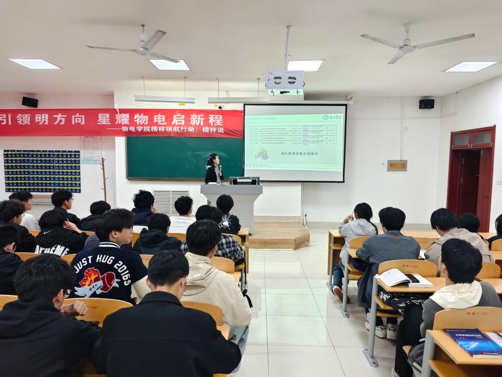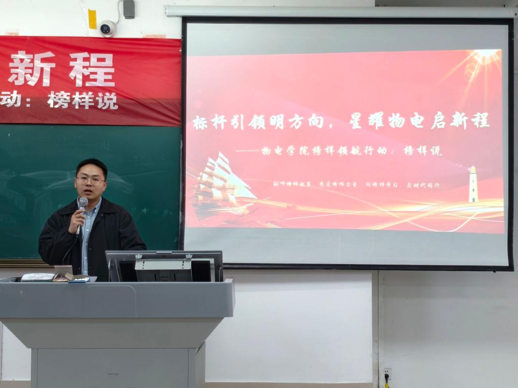 为充分发挥榜样的示范引领作用,激发学院学生明确奋斗方向、汲取奋进力量,营造积极向上的学习氛围,物电学院于4月9日晚在明理楼0126举办“标杆引领明方向,星耀物电启新程——榜样领航行动:榜样说”活动。