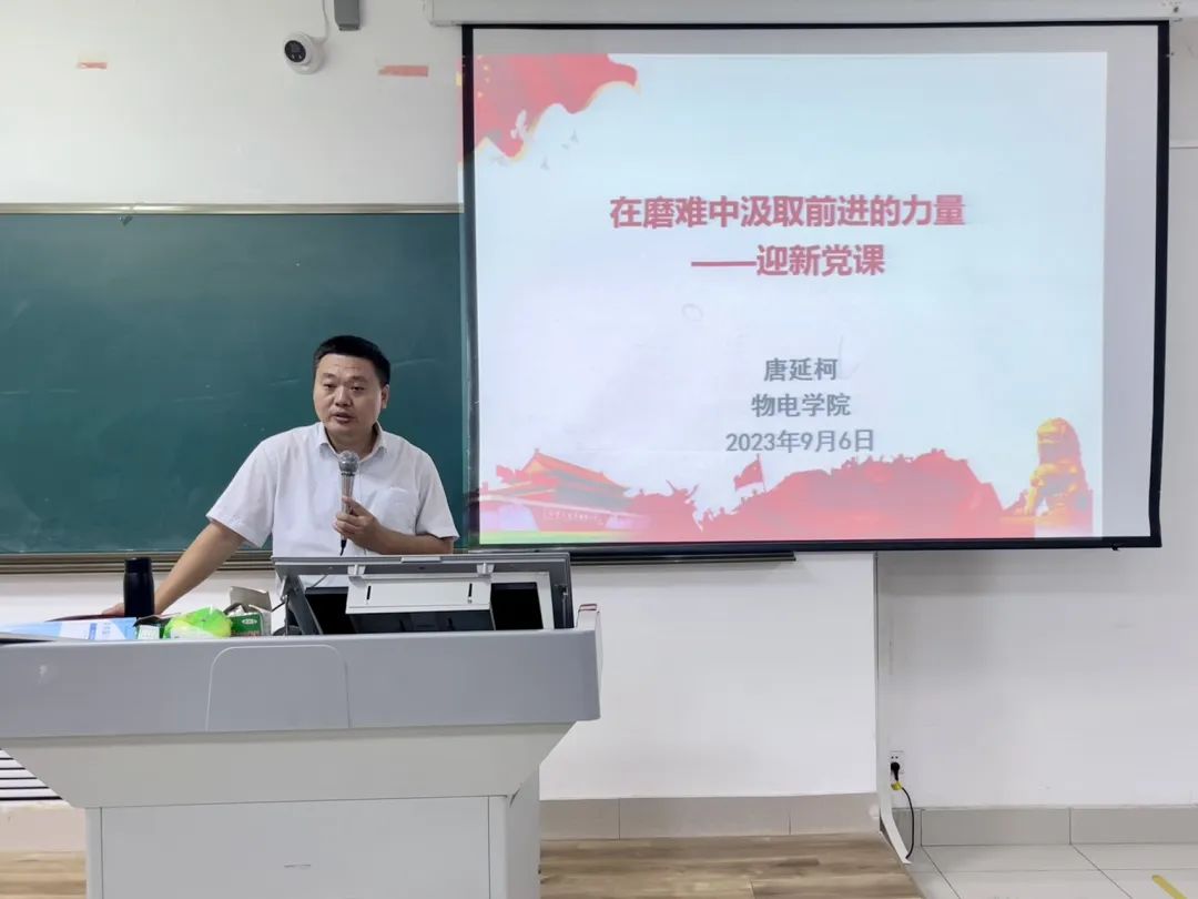 为教育引导2023级新生积极向党组织靠拢,坚守“为党育人、为国育才”的初心和使命,牢牢抓好新生入学教育关键期,9月6日晚19点,物电学院以“在磨难中汲取前进的力量”为主题,开展新生入党启蒙教育,由物电学院院长唐延柯担任主讲。