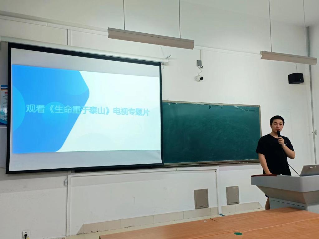 为深入学习贯彻习近平总书记关于安全生产重要论述,引导学生树牢“人民至上,生命至上”的安全发展观念。6月11日,物电学院组织学生在明理楼集体观看《生命重于泰山》专题片。