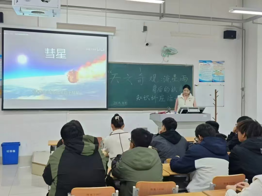 为激发学生对天文学的兴趣和热爱,进一步普及天文学知识,物电学院天文爱好者协会于11月12日在明理楼118教室举办“天文奇观:流星雨背后的故事”知识讲座。