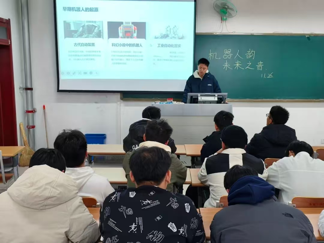 为丰富同学们对机器人的认知,培养同学们的创新思维与创造力,营造浓厚的科技氛围,物电学院机器人联盟社团于11月26日在明理楼223教室开展“机器人韵,未来之音”知识讲座活动。
